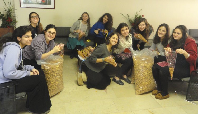 Midreshet girls, headed by Naomi Kahn, packaged over 300 mishloach manot packages for an organization called 'Yad LaYeled HaMeyuchad' which assists families raising children with special needs. The packages will be distributed to these families on Purim. It was an incredible group effort and they loved doing it.
