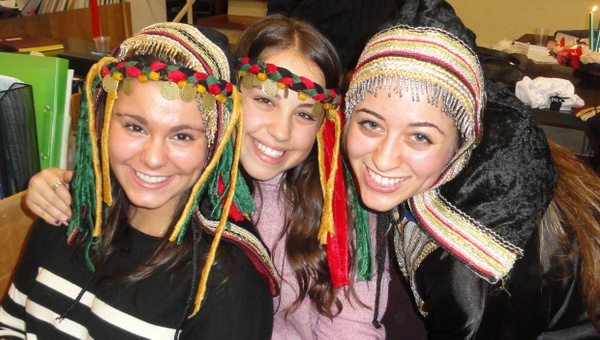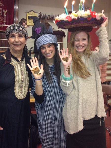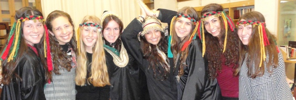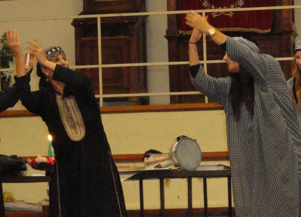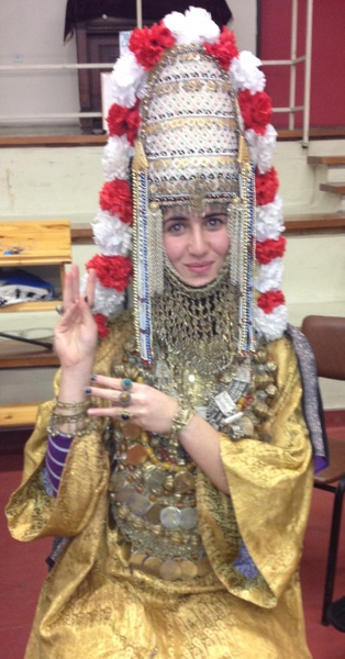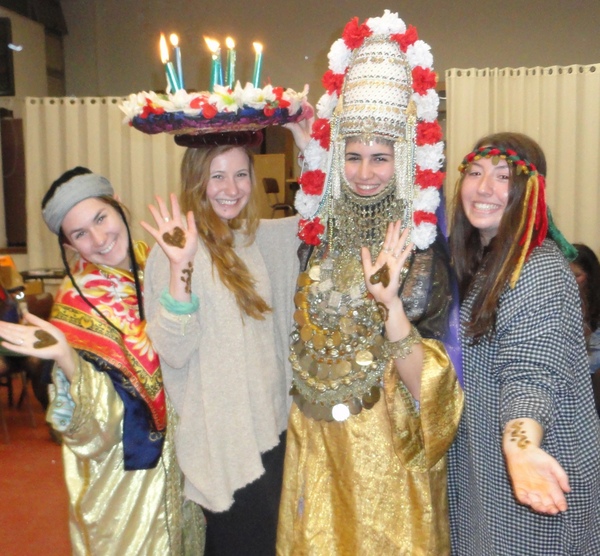 Last Wednesday evening was our ethnic evening. We experienced a culture shock as a Yehudit, a Yemenite woman, joined us and together we created a traditional Yemenite Henna (pronounced “cheena”). This is a pre-marriage ceremony, celebrated by Yemenite Jews (usually a week before the wedding). In Yemen, girls married very young and this ritual was to prepare the bride for her marriage. Today, the Henna ceremony focuses more on the couple, and on blessing them and their future journey together. To create an authentic atmosphere, Yehudit brought a suitcase filled with the traditional garb including robes and headgear for everyone- both male and female "costumes". Becca Mason was honoured as the groom and Shulie Just-Michael was her beautiful bride. They were dressed in the traditional bride and groom clothing (not an easy task!) and together, we performed the Yemenite songs and dances we had learnt. It was a fantastic and really special evening.