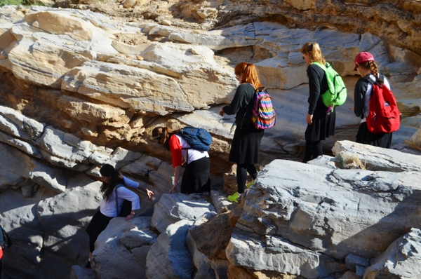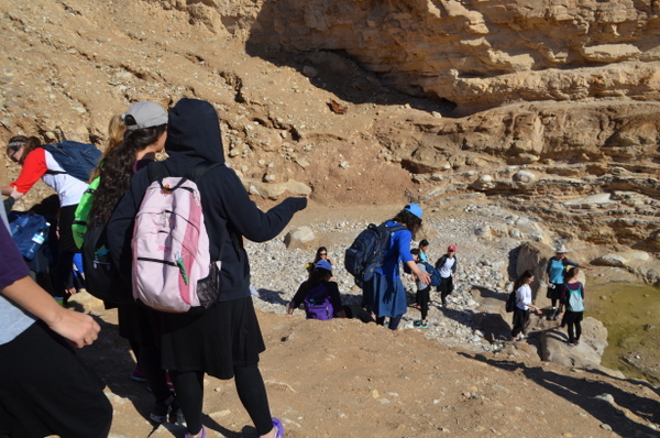Midreshet went on amazing hike to Nachal Og near Yam Hamelach. It was a beautiful Sunday morning, perfect for hiking. The sun was shining and gorgeously reflecting off the pools of water. WHAT! Water in the desert? Yes! Miracles right before our eyes! It was a sight to see... But after the storms last week, the run off built up to pools and even waterfalls scattered through the desert.