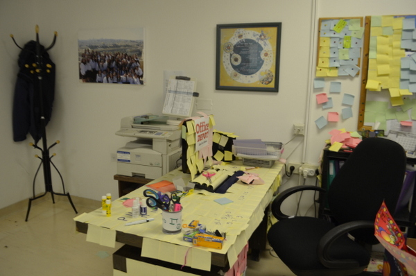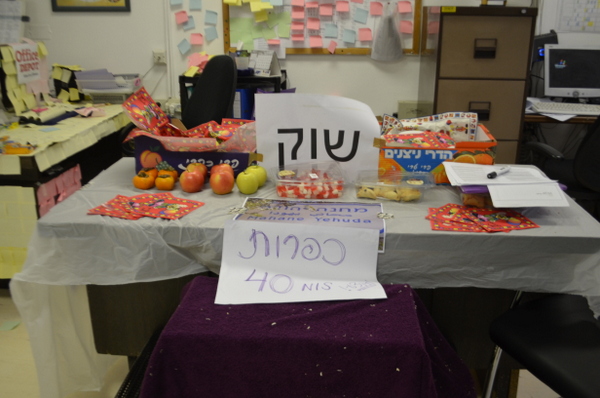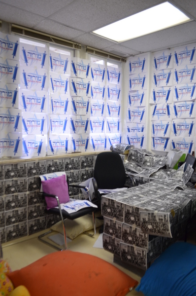 Our staff was greeted first thing Tuesday morning to the annual "Midmo Adar prank." This year, we chose a Yerushalayim theme and spent late night hours decorating the office as different parts of Jerusalem including the shuk, Meah She'arim, Shaarei Tzedek, Midreshet (of course) and more!