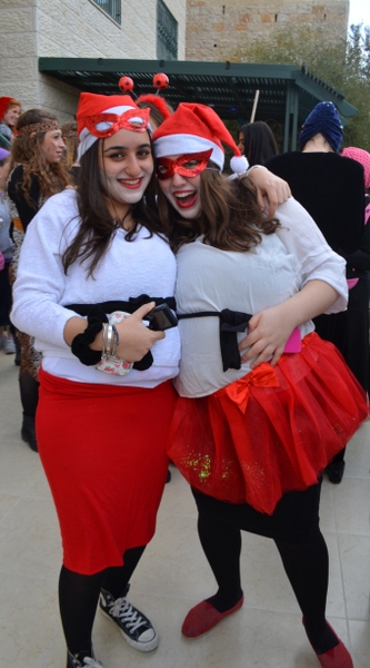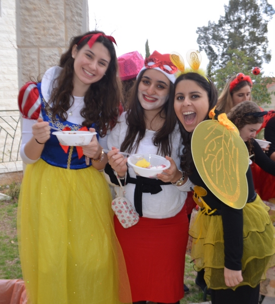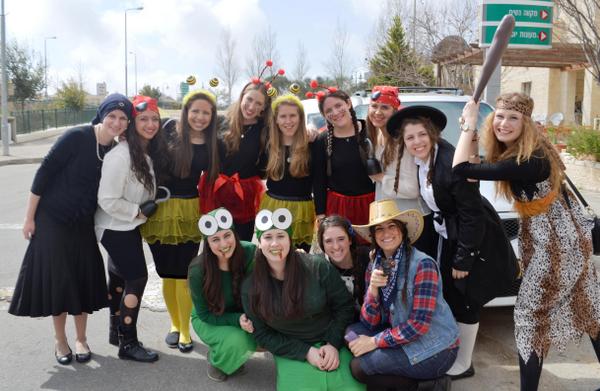 This week at Midreshet we celebrated Purim and Shushan Purim. The celebrations began on Sunday as we headed off to the Gush to 'bar-hop' at different teachers houses. Each teacher's house had a different food bar; Salad bar at Leora's, Potato bar at Bracha's and an Ice Cream bar at Rav Eitan's. It was a lot of fun and the teachers were very open and inviting. Later on that evening we heard Megillah in our very own Beit Midrash – Purim in Yerushalyim had officially begun! Wearing costumes with the theme “Around the World”, we had an amazing Purim Chagigah! Together with Vicky, Ruthie, Leora, Yehudis, Sepha and Neima, we ate a Barbeque dinner, danced and watched Purim shpiels put together by Emma Stein and Shuli Just-Michael and our amazing Madrichot. Emma and Shuli did a great job getting the whole Midreshet involved and we laughed a whole lot, especially to the Madrichot's mashup to gangnam style (check it out on you tube). We also had a special guest appearance from a renowned Rebbe (who bared a strong resemblance to Rav Lerner) who gave blessings to us all.