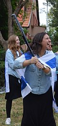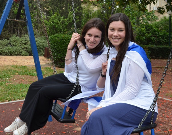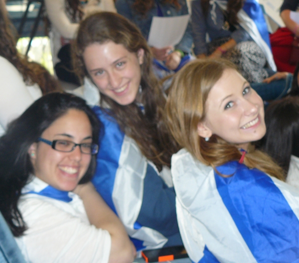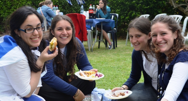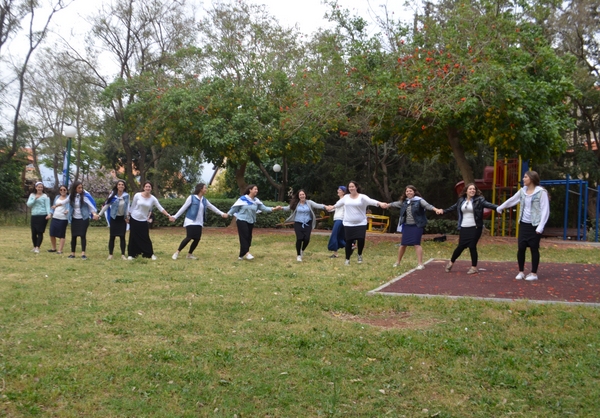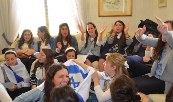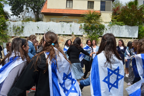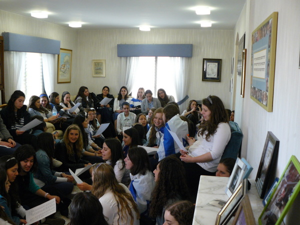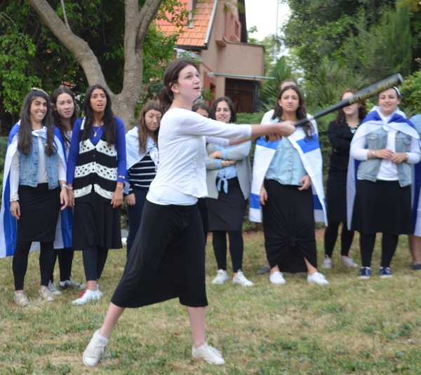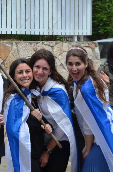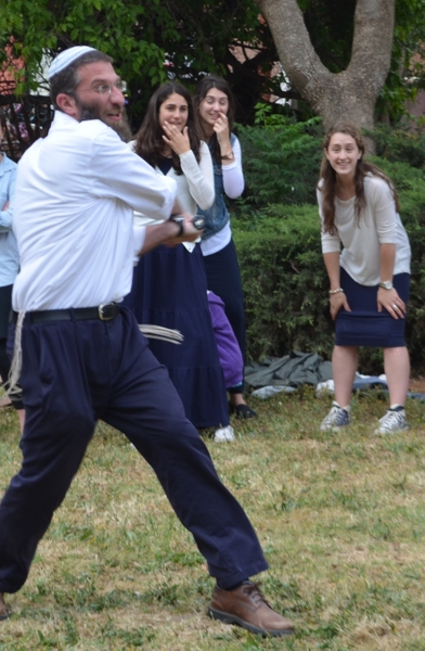 On a happier note, Monday night was the start of Yom Ha'atzmaut. We went to Efrat and joined in their tekes. There was a very cute performance by the children of Efrat, celebrating the growth and expansion of Efrat since its beginning, 30 years ago. We watched the fireworks and then went over to Bracha's house for the best falafel in Israel (!). Tuesday morning, on our way to Rav Berglas and Vicky's house in Neve Aliza, we stopped in the town of Ariel for a photo op. (check us out on 'Midreshet Moriah - the page' on Facebook). At The Berglas' we had a fun filled chagigah and a barbecue catered by, our one and only, Fagie ('The Gush Gourmet'). There was some rain (which was a blessing…) so we went inside to sing some songs led by a two man band. Afterwards we went outside to play some really competitive softball (We're only kidding, no one is competitive in Midreshet, only in our learning :)). Vicky then told us how Neve Aliza was established (by the Berglas's, of course) and what brought the Berglas' to make Aliyah and settle there. We ended off with a beautiful Hatikvah.