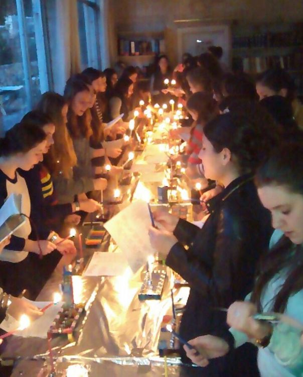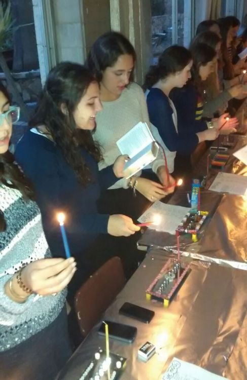 We started preparing for Chanukah last Wednesday by making our very own chanukiyot (menorah’s). It was really exciting getting into the spirit of the upcoming chag and fun to see how everyone’s chanukiya was creative and unique. On the first night of Chanukah we all gathered together to light our homemade chanukiyot in the Beis. It was inspiring to see all of our chanukiyot lit and glowing as it got dark. We heard inspiring words from our very own Allie Segal, and the night turned into songs and sufganiyot, generously bought by the school.