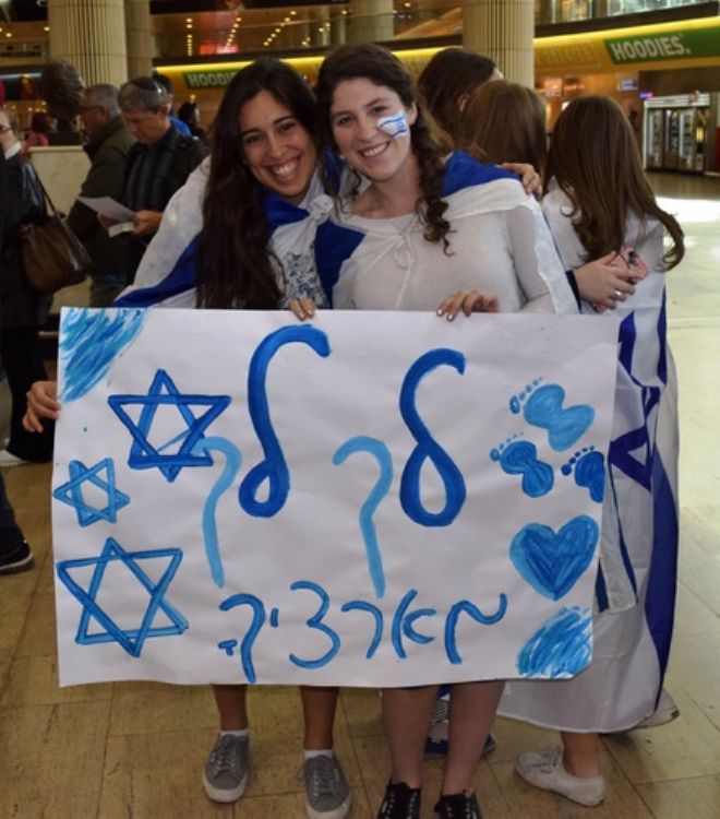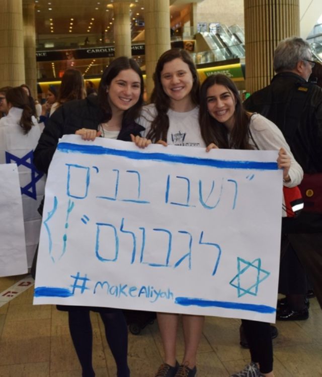 We were also privileged this past week to go to the airport and greet the Nefesh b’Nefesh flight of new olim. These people have picked up their lives from whatever country they have come from in order to move to a place they are less familiar with. They too have enhanced their lives by taking this courageous step forward. We at Midmo decorated posters, dressed in white and blue, wore Israeli flags and came to the airport full of spirit and enthusiasm to greet the olim. When they finally landed they had this look of awe and amazement. They had no idea that there would be 86 seminary girls singing and dancing in honor of their arrival. They are an inspiration to us all.