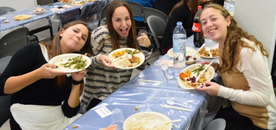 Instead of having a small ceremony after the shiva, Sarah decided that the best way to show that Am Yisrael would not be defeated would be to bring simcha to all of klal Yisrael by inviting everyone to the wedding. So right after eating our Thanksgiving dinner (prepared by shana alef girls in our Midreshet kitchen!), we gave even more thanks by being part of a nation that came together from all over the world, to experience the feeling of unity and hope after these tough few months. The excitement continued with the arrival of many girls’ parents. No matter where we ate our turkeys that night, it was a really special night for everyone.