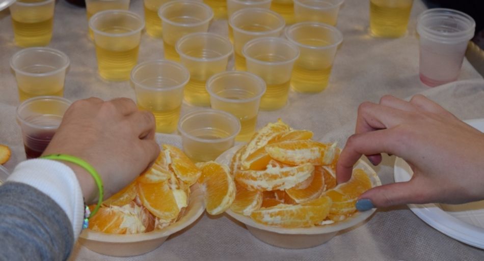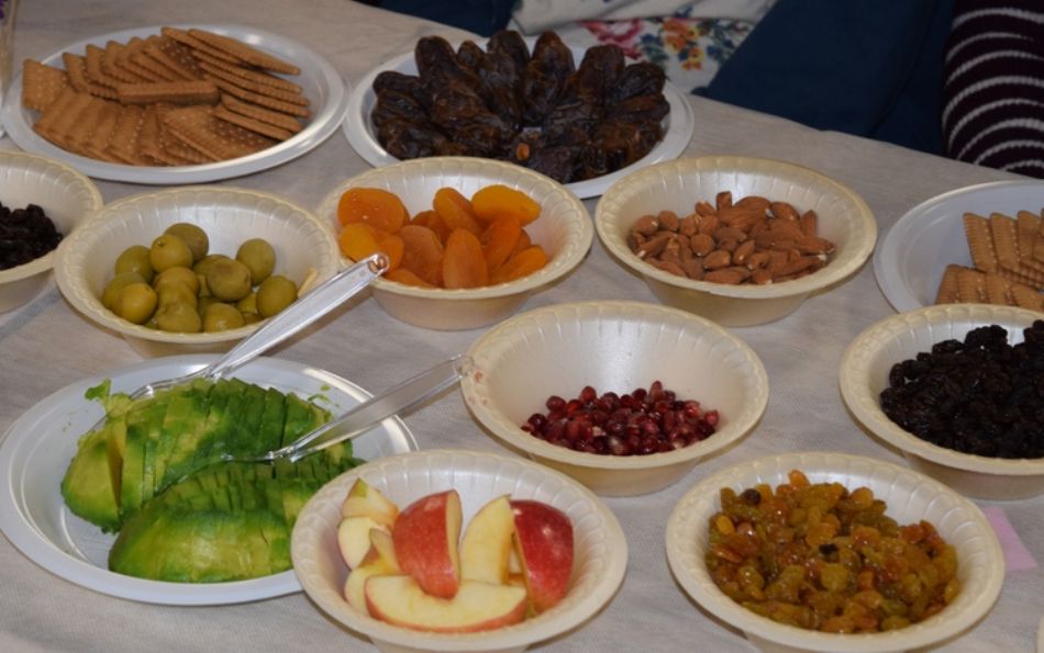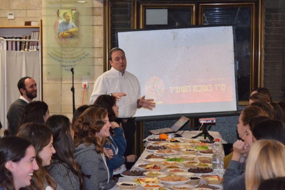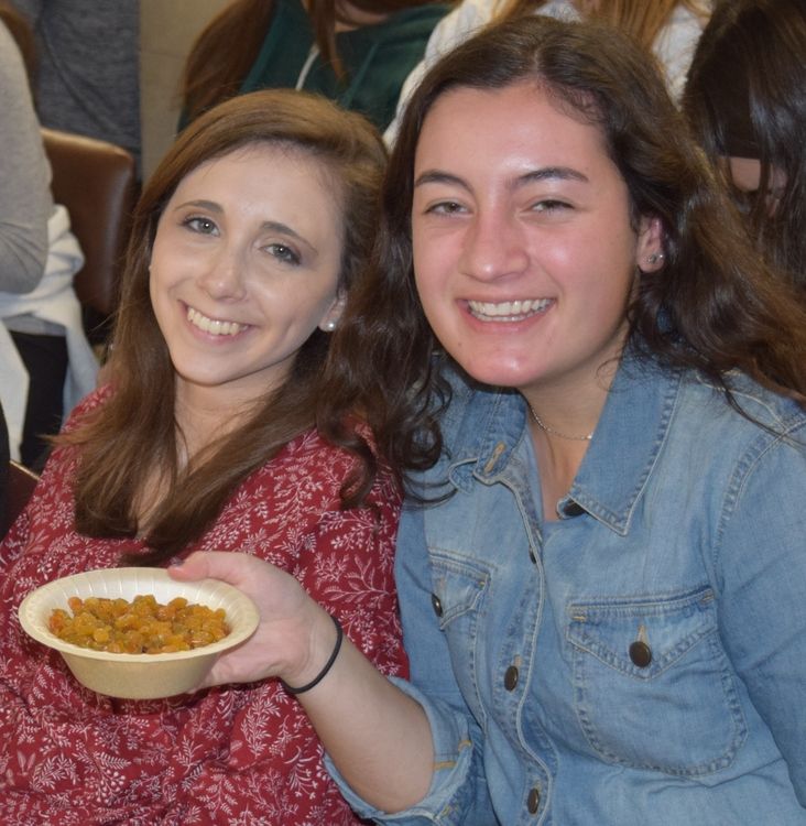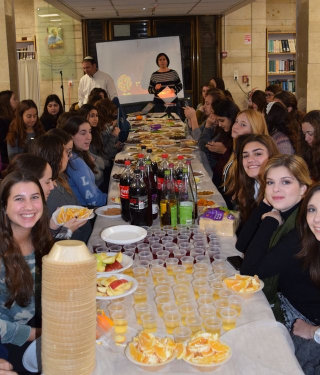 Sunday night we introduced Tu b'Shvat in a hands-on way. We had the privilege of hearing from Chanoch who led us in a real Tu b'Shvat Seder! He opened our eyes to the true meaning of Tu b'Shvat. We had a huge variety of different fruits to eat and as we ate we learnt their significance to the Eretz Yisrael. We had two different colors of grape juice, oranges, apples, dates, apricots, pomegranates, olives, avocado, raisins and even tea biscuits! As we ate each one, Chanoch would ask us to share a thought on what makes this fruit special. We heard so many inspiring insights to how each fruit is unique in its own way.