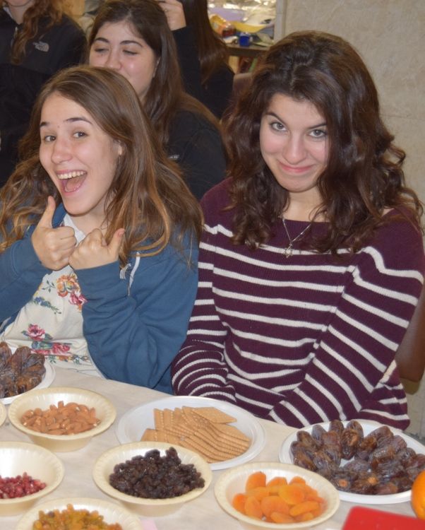 Monday fun did not stop there! Later that morning a few girls visited a local kindergarten and prepared Tu b'Shvat treats with them and we kept the fun going with popcorn and hot cocoa with our ‘mads’ to prepare for the upcoming "blizzard"